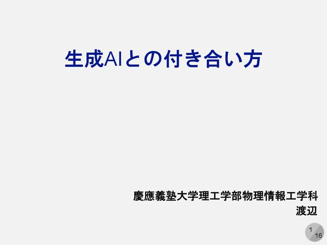 1 16 生成AIとの付き合い方 慶應義塾大学理工学部物理情報工学科 渡辺