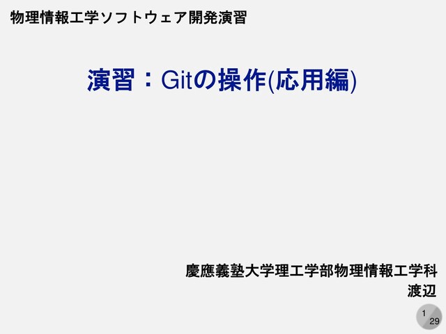 1 29 演習:Gitの操作(応用編) 慶應義塾大学理工学部物理情報工学科 渡辺 物理情報工学ソフトウェア開発演習