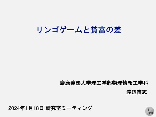 1 30 慶應義塾大学理工学部物理情報工学科 渡辺宙志 2024年1月18日 研究室ミーティング リンゴゲームと貧富の差
