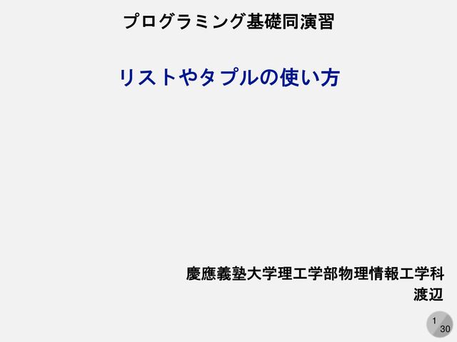 1 30 リストやタプルの使い方 プログラミング基礎同演習 慶應義塾大学理工学部物理情報工学科 渡辺
