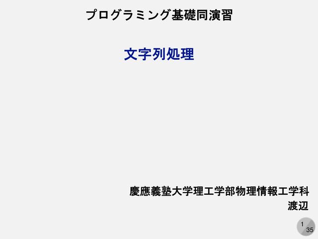 1 35 文字列処理 プログラミング基礎同演習 慶應義塾大学理工学部物理情報工学科 渡辺