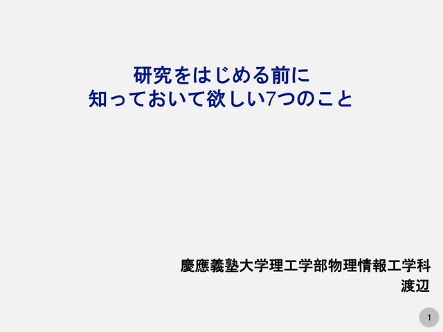 1 1 研究をはじめる前に 知っておいて欲しい7つのこと 慶應義塾大学理工学部物理情報工学科 渡辺