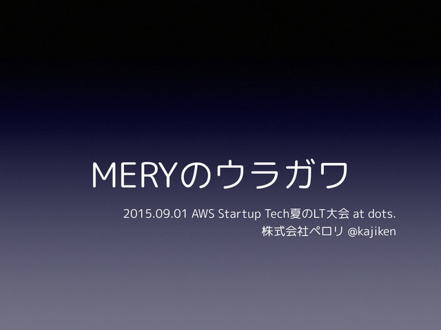 MERYのウラガワ 2015.09.01 AWS Startup Tech夏のLT大会 at dots. 株式会社ペロリ @kajiken