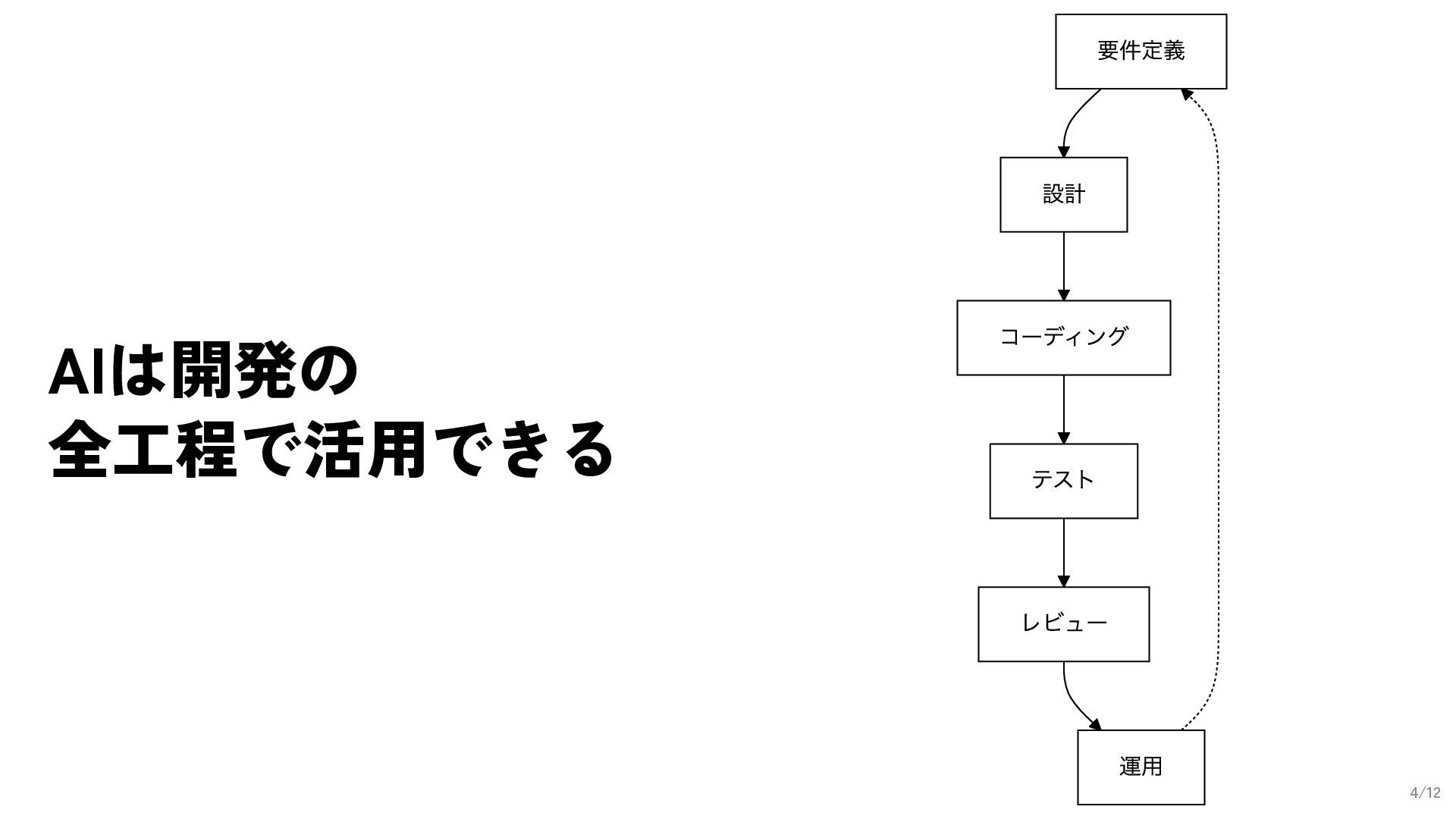 AIはコーディングだけでなく、開発の全工程で活用できる。TechTrainでの実践を通じて、各フェーズでのAI活用法を紹介。