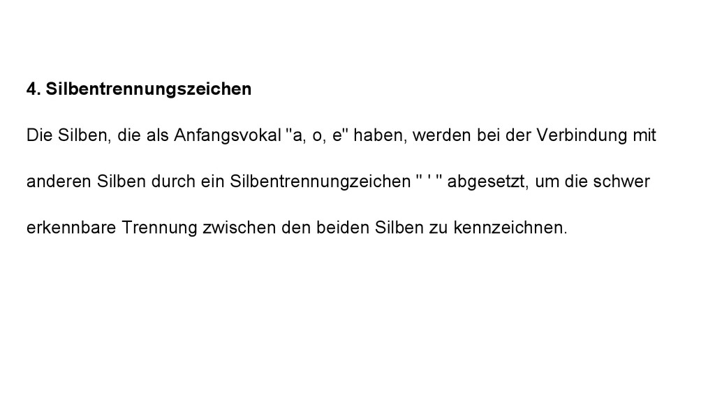 haben, werden bei der Verbindung mit anderen Silben durch ein Silbentrennungzeichen " ' " abgesetzt, um die schwer erkennbare Trennung zwischen den beiden Silben zu kennzeichnen.