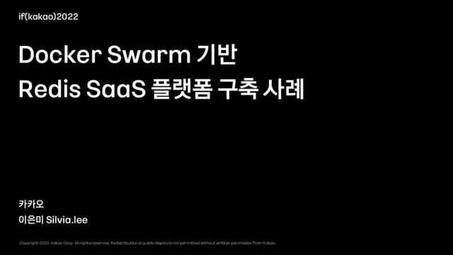 발표자 : silvia.lee 카카오 시스템 엔지니어와 레디스 플랫폼 엔지니어를 맡고있는 실비아입니다.