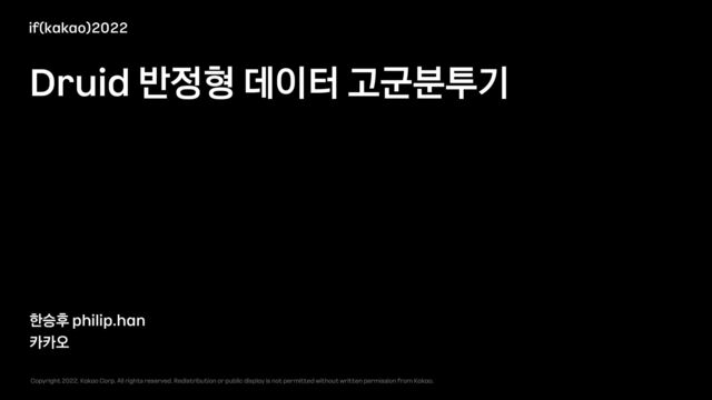 발표자 : philip.han 카카오에서 데이터엔지니어로 일하고 있는 필립입니다. 개발이 좋아 이 일을 시작했습니다. 현재는 메니징 업무가 많지만 항상 개발을 꿈꾸는 꿈나무입니다.