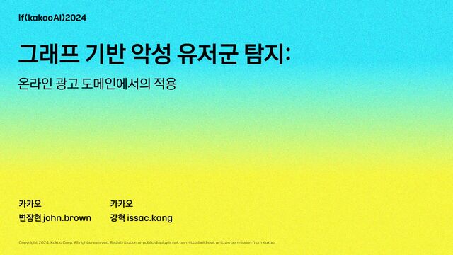 john.brown: 광고추천팀의 존입니다. 광고주의 이익을 지키기 위해 이상탐지 기술로 카카오 내외부 광고 매체의 악성 트래픽을 탐지하고 방지합니다.