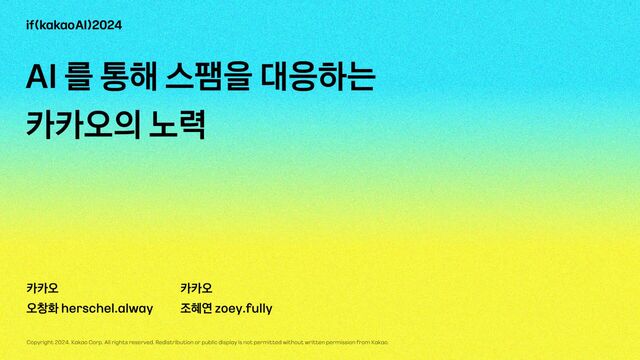 - 카카오에서 스팸 차단 AI를 연구하는 Zoey입니다. LLM으로 안전한 디지털 환경을 만들고자 합니다.