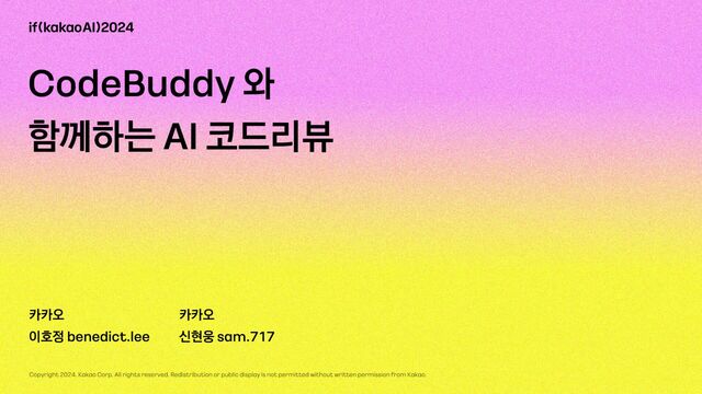 이 발표에서는 카카오의 코드 리뷰에 대한 철학과, AI 코드 리뷰에 대한 접근 방식을 공유하고자 합니다.