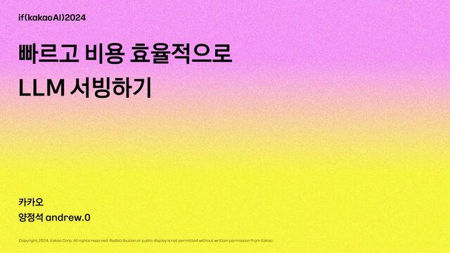 발표자 : andrew.0 AI Engineering 조직 리더 andrew입니다. 저희의 추론 최적화 시도에 관해서 말씀드리고자 합니다.
