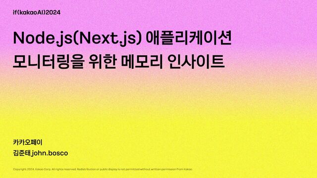 Node.js 애플리케이션의 메모리 지표의 의미와, 실제로 어떤 Native API를 사용하여 데이터를 측정하는지. Node.js Native API의 데이터 측정 방식을 살펴봅니다. Node.js 애플리케이션을 운영해야 하는 분들 중, 메모리 지표 해석에 대한 지식이 필요한 분들이라면 이 세션을 추천합니다.