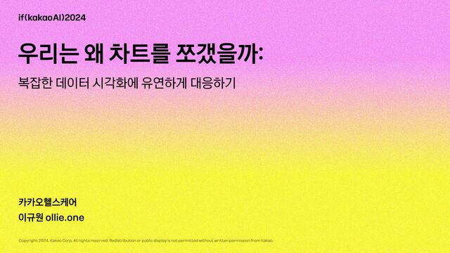 데이터를 활용하는 분야에서 적절한 시각화는 매우 중요합니다. 하지만 복잡한 요구사항에 대응하기 위해 차트의 깊은 곳까지 들여다보는 일은 때때로 매우 어렵습니다. 디자인 시스템을 조립하듯 쉽게 차트를 만들 수 있다면 어떨까요? 이를 위해 차트의 로직과 UI를 분리하여 정의하고, 새롭게 설계 및 구현한 과정을 공유합니다.