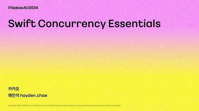Swift 6부터 본격적으로 지원되는 Swift Concurrency에 대한 전반적인 개념을 소개합니다. 동시성 환경에서 안전한 코드를 만들기 위한 Concurrency의 주요 개념들에 대해 다루며, 이들을 다룰 때 주의할 점과 카카오톡에서는 어떻게 이용하고 있는지를 알아봅니다.