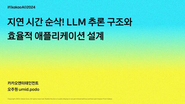LLM 기반 애플리케이션에서 지연 시간 최소화는 핵심적인 도전 과제입니다. 이번 발표에서는 빠른 응답 속도를 자랑하는 캐릭터 페르소나 구현 경험과 노하우를 공유합니다. LLM의 시퀀스 생성 메커니즘을 분석하여 효율적인 활용 방안을 제시하고, 이를 통해 애플리케이션의 지연 시간을 최소화하는 방법을 탐구합니다. 최적화된 설계를 통해 사용자 경험을 극대화하고 실시간 응답 애플리케이션의 성능을 향상시키는 구체적인 전략을 소개합니다.