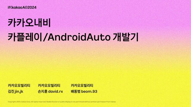 카카오내비의 카플레이(CarPlay) 및 안드로이드 오토(Android Auto) 개발 과정을 다룹니다.