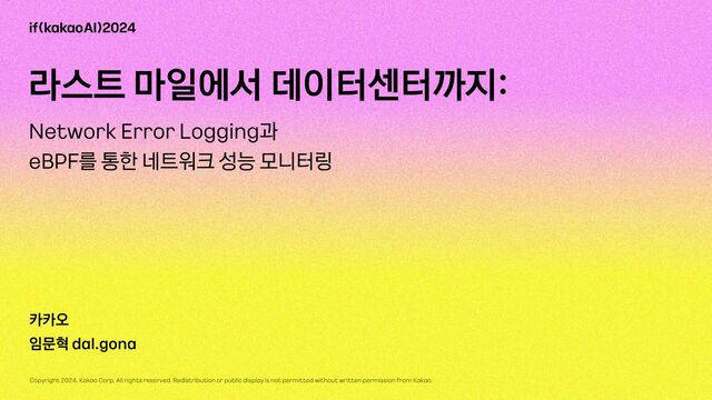 발표자 : dal.gona 카카오에서 네트워크 운영 및 관련 서비스 개발을 담당하고 있습니다.
