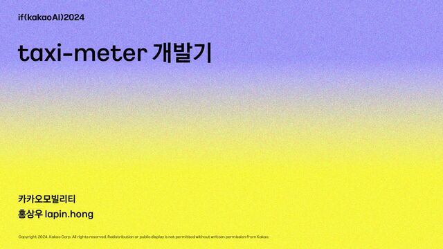 발표자 : lapin.hong 모빌리티 개발실에서 택시의 요금과 사업 구역을 주로 맡은 라팡입니다.