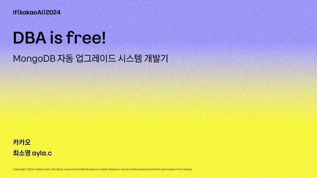 자유를 얻은 DBA 아일라입니다. 카카오의 분산데이터베이스 조직에서 전사 MongoDB 관리를 담당하고 있습니다.