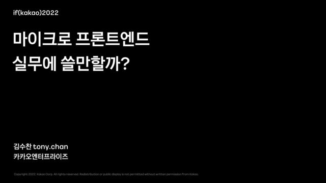 요즘 FE 기술 트렌드로 많이 언급되는 '마이크로 프론트엔드'. 말은 많은데, 실무에 어떻게 적용할 수 있을까요? 그리고 내 프로젝트에 적용해도 되는 걸까요? 그리고 적용하면 어떤 이득이 있을까요? 개발자와 사용자 모두 win-win 할 수 있는 마이크로 프론트엔드 아키텍처. 카카오워크 FE 개발팀은 실무에 어떻게 적용하고 있는지를 공유해 드립니다.