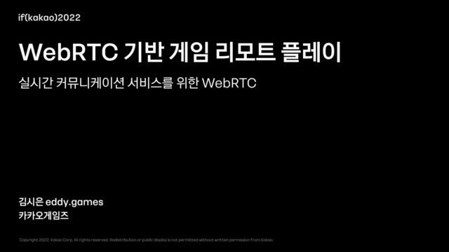 rights reserved. Redistribution or public display is not permitted without written permission from Kakao. 김시은 eddy.games 카카오게임즈 if(kakao)2022 WebRTC 기반 게임 리모트 플레이