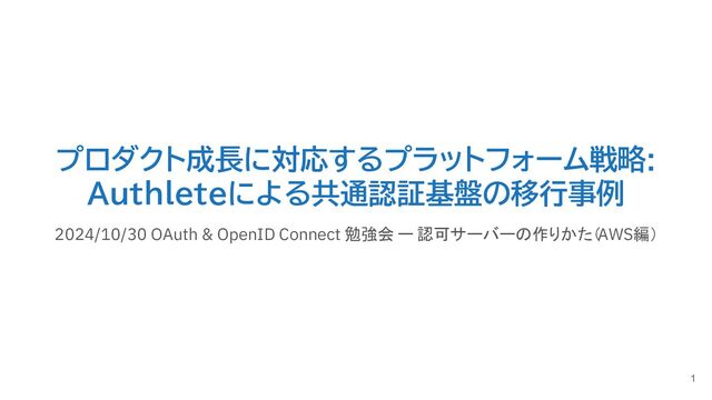 プロダクト成長に対応するプラットフォーム戦略: Authleteによる共通認証基盤の移行事例 2024/10/30 OAuth & OpenID Connect 勉強会 ー 認可サーバーの作りかた(AWS編)