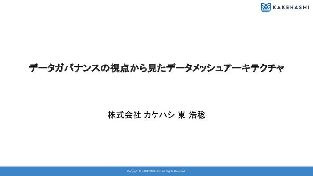 複雑な構成 データが、複数の場所で分散さ れ管理され、複雑な構成で難易 度が高い。 ①ポリシーとプロセスの 明確化 ・データガバナンス担当 ・ドメインチーム ・データメッシュに合わ せたポリシーとルールを 策定し、ドメインチーム が運用 ・レビューやガイドライ ン、相談会による支援 ・ワークスペースの分離 ・Infra as Code アクセス制御 の煩雑さ データの連携先や、利用者が多 岐にわたるため、アクセス制御 が煩雑になりやすい。 ②権限委譲と一元化され たアクセス制御 ・データガバナンス担当 ・データスチュワード、 データオーナー データアクセスポリシー およびルールを策定し、 データ共有と公開の権限 を委譲し、ドメインチー ムが運用 ・アクセス制御管理 ・アクセス記録の監査 ・データ要求と承認記録 不安定な品質 と理解が困難 各ドメインでデータを管理するた め、データ品質を保証する仕組みが バラバラになりやすい。 また、データが分散配置され、流通 し共有されるので、データの所在、 流通経路、内容の理解が困難であ る。 ③製品の機能を利用した 品質、メタデータの管理 ・データガバナンス担当 ・ドメインチーム データ品質のポリシーお よびルールを策定し、ド メインチームが運用 ・データ品質管理 ・データリネージ ・メタデータ管理 再掲:データメッシュにおけるデータガバナンス データメッシュにおけるデータガバナンスは、人、プロセス、テクノロジーを組み 合わせて実践する。