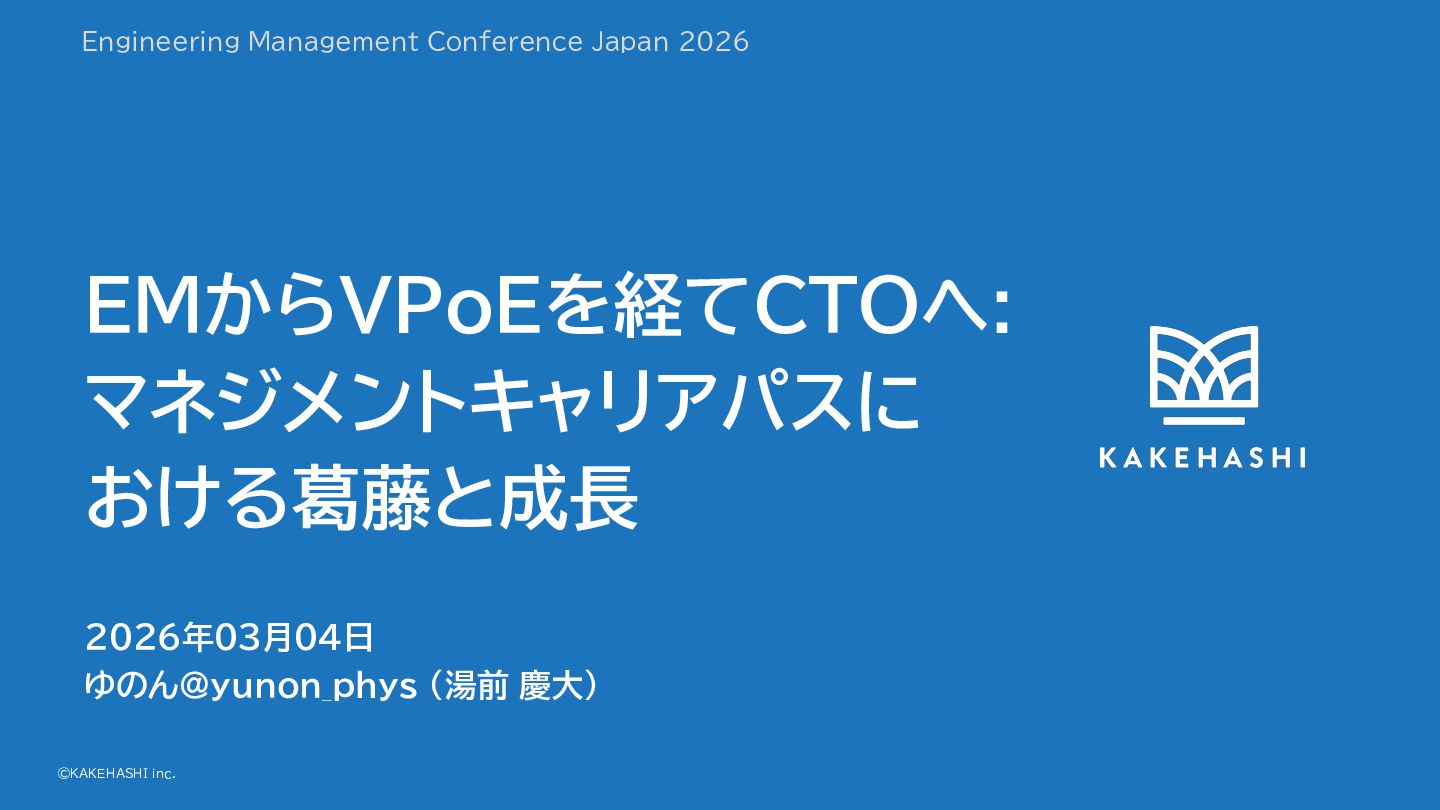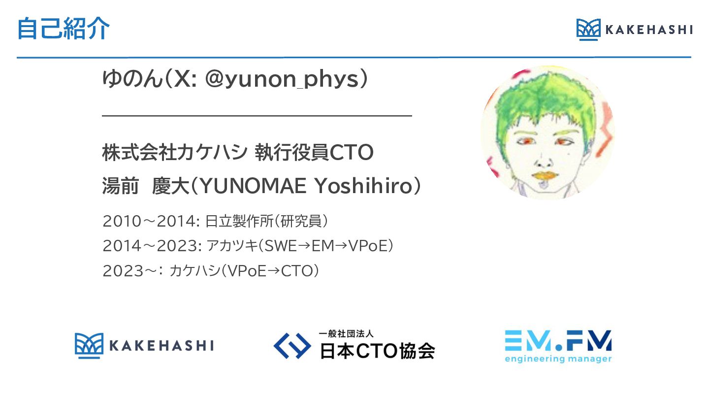 ©KAKEHASHI inc. EMか VPoEを経てCTOへ: マネジメントキャリアパスに おけ 葛藤と成長 2026年03月04日 ゆのん@yunon_phys (湯前
