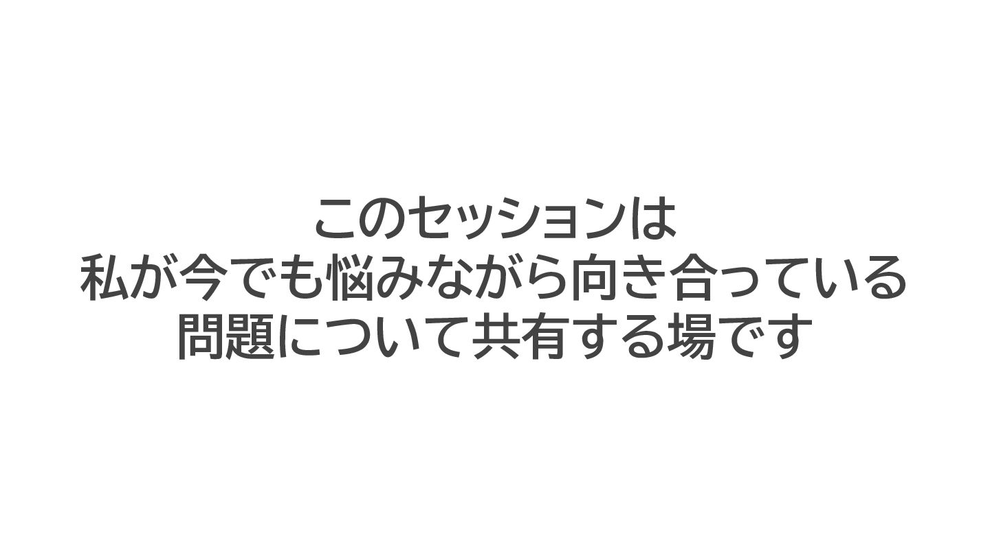 このセッションは 私が今でも悩みなが 向き合ってい 問題について共有す 場です