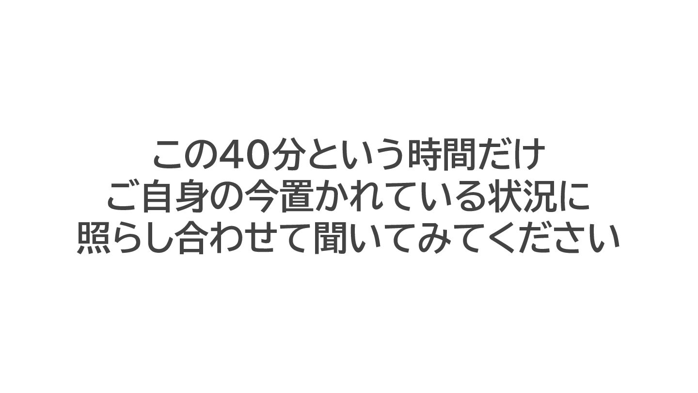 この40分という時間だけ ご自身の今置か てい 状況に 照 し合わせて聞いてみてください