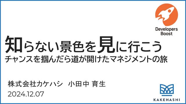 知らない景色を見に行こう チャンスを掴んだら道が開けたマネジメントの旅 株式会社カケハシ 小田中 育生 2024.12.07