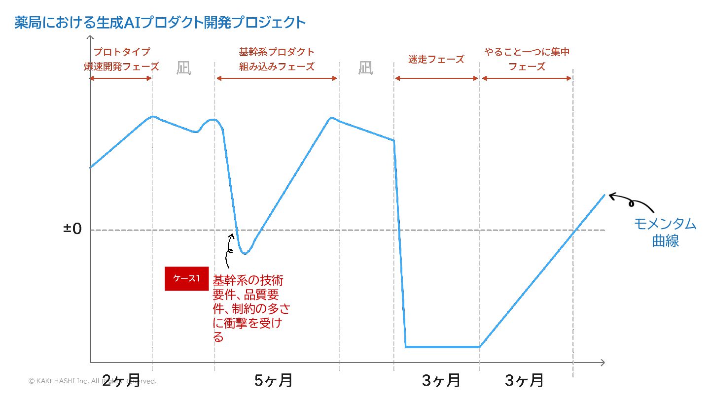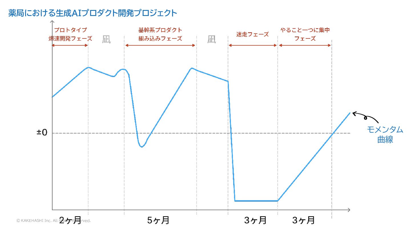 © KAKEHASHI Inc. All Rights Reserved. 薬局における生成AIプロダクト開発プロジェクト モメンタム 曲線 それに伴いプ
