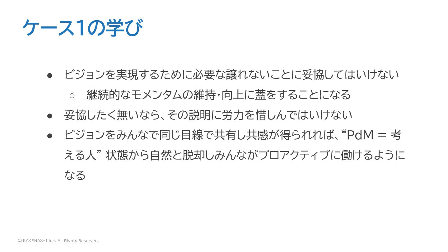 © KAKEHASHI Inc. All Rights Reserved. ケース1の学び • ビジョンを実現するために必要な譲れないことに妥協してはいけない ◦
