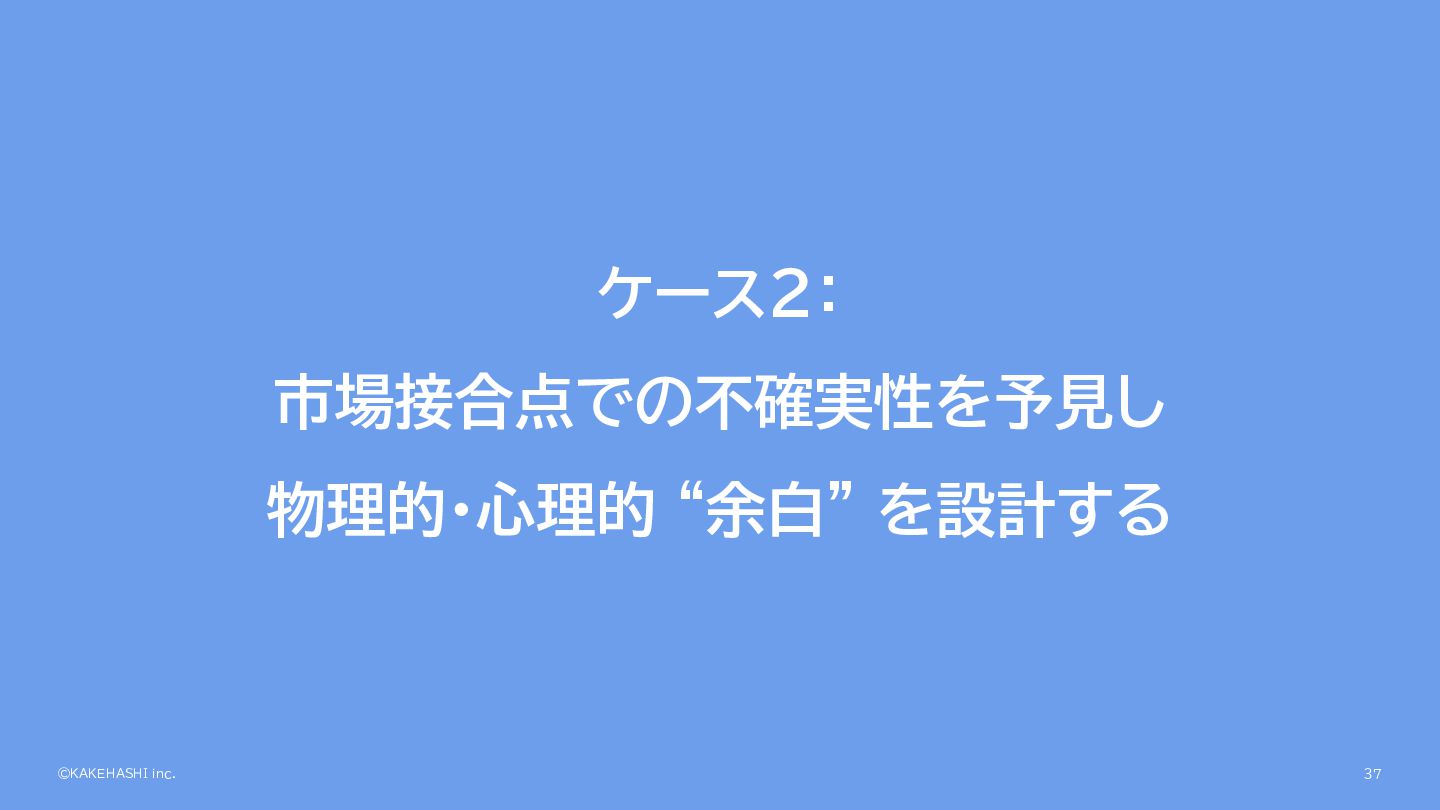 ©KAKEHASHI inc. ケース2: 市場接合点での不確実性を予見し 物理的・心理的 “余白” を設計する 37