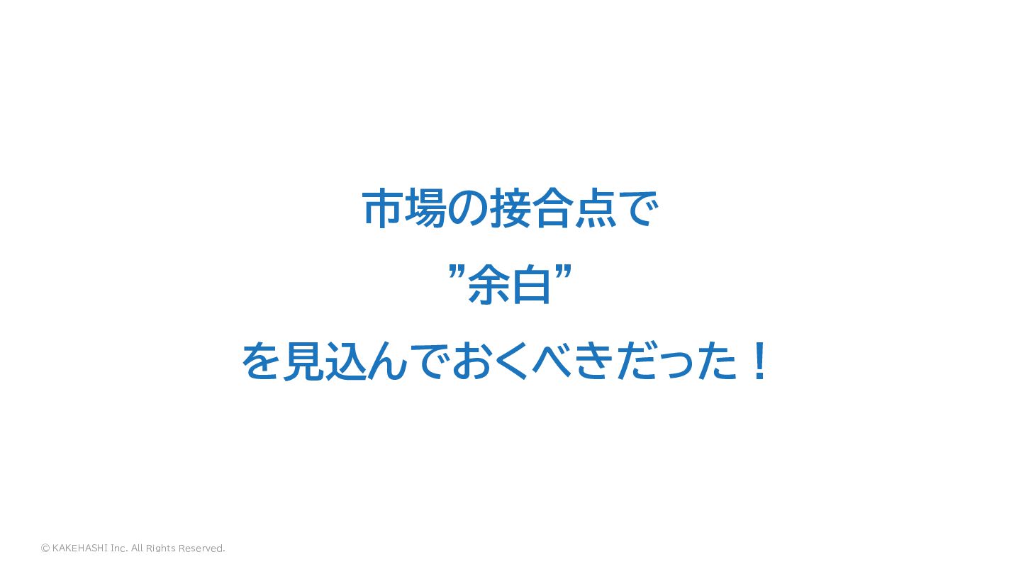 © KAKEHASHI Inc. All Rights Reserved. 市場の接合点で ”余白” を見込んでおくべきだった!