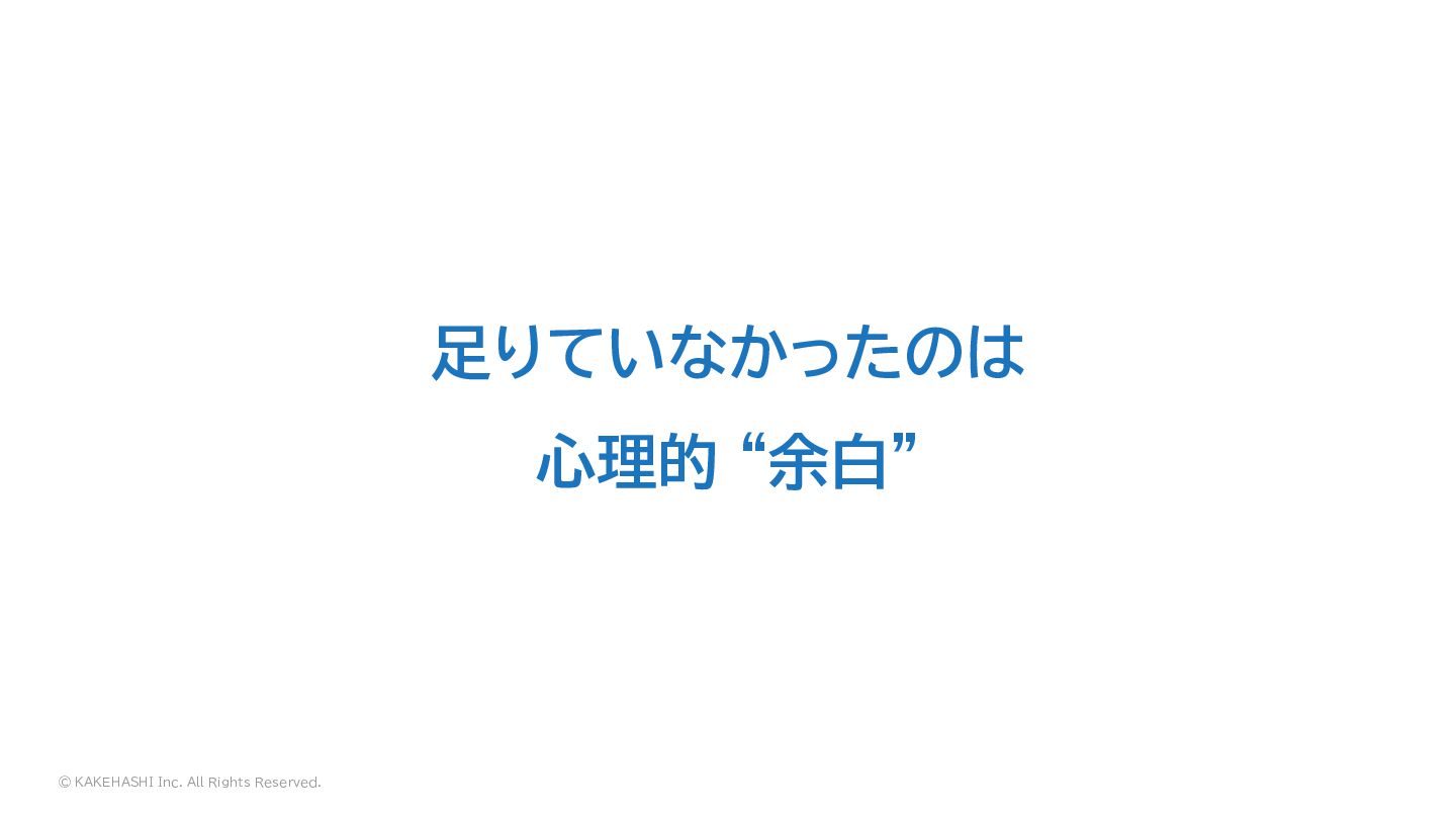 © KAKEHASHI Inc. All Rights Reserved. 足りていなかったのは 心理的 “余白”