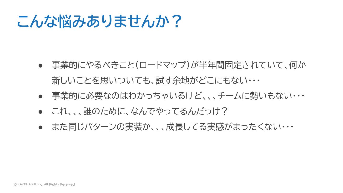 © KAKEHASHI Inc. All Rights Reserved. • 仕事が楽しくない、面白みがない • やらないといけないことはわかっているがエネ