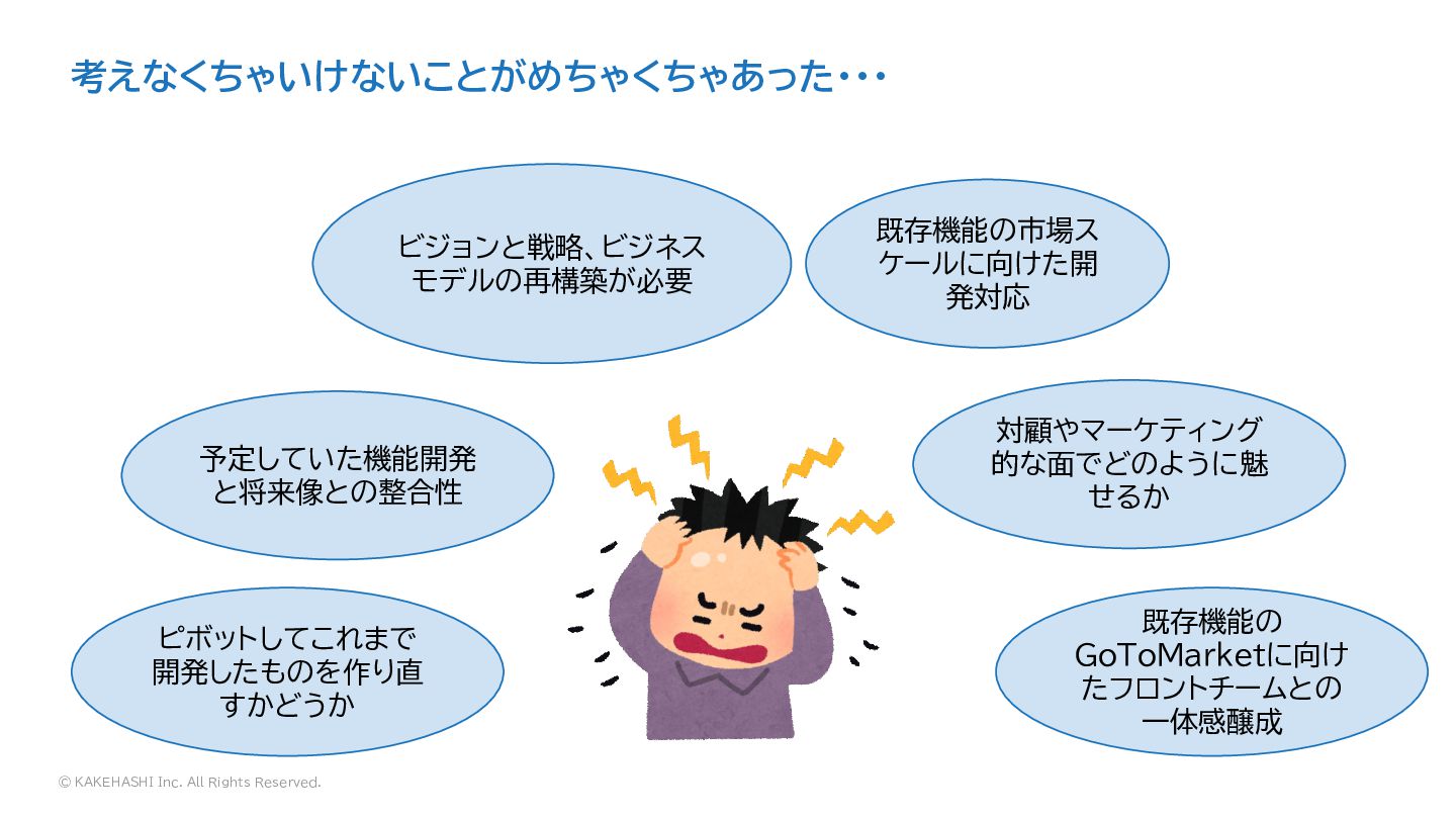 © KAKEHASHI Inc. All Rights Reserved. 予定していた機能開発 と将来像との整合性 ビジョンと戦略、ビジネス モデルの再構築が必要