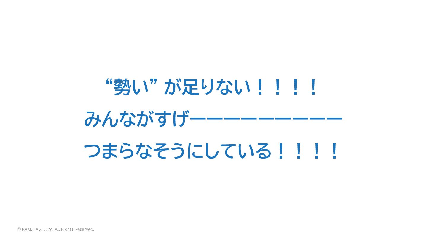 © KAKEHASHI Inc. All Rights Reserved. “勢い” が足りない!!!! みんながすげーーーーーーーーー つまらなそうにしている!!!!