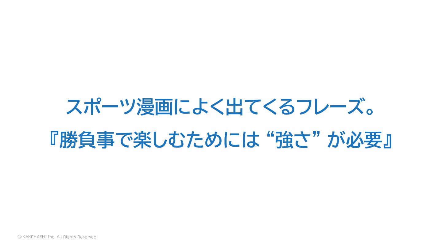© KAKEHASHI Inc. All Rights Reserved. スポーツ漫画によく出てくるフレーズ。 『勝負事で楽しむためには “強さ” が必要』