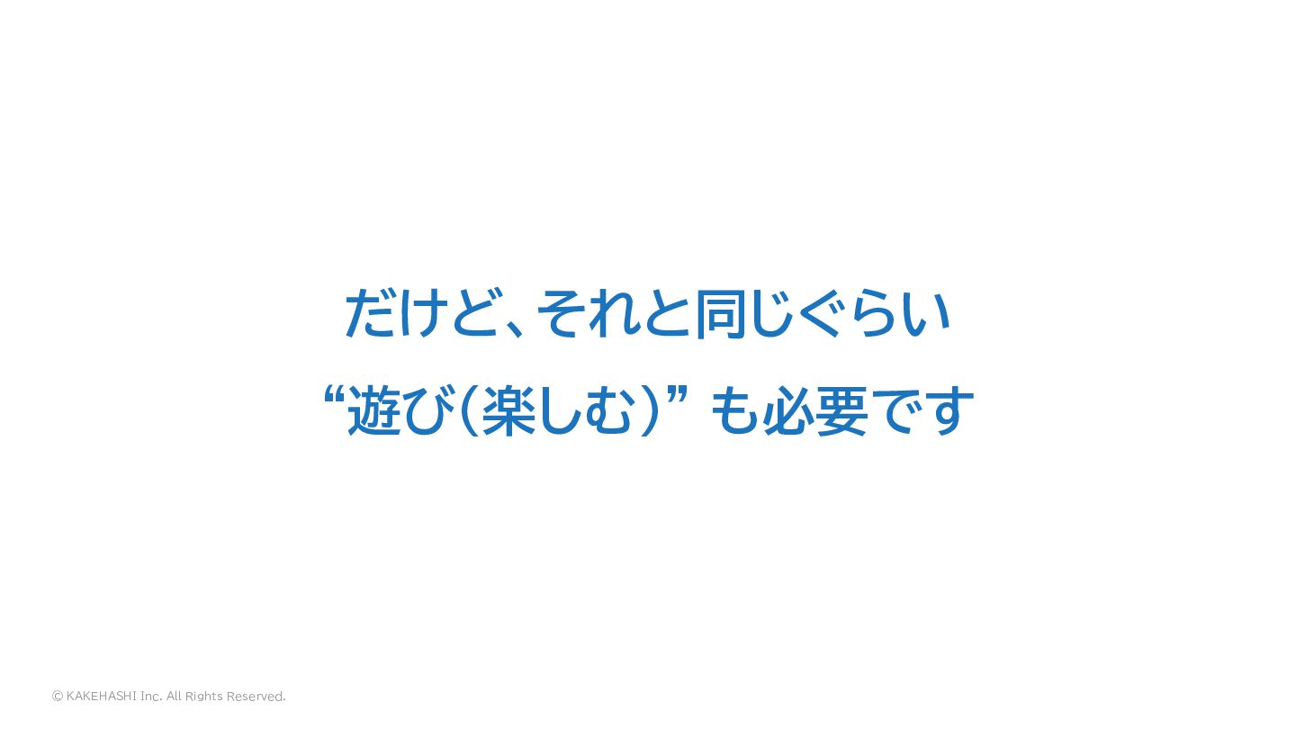 © KAKEHASHI Inc. All Rights Reserved. だけど、それと同じぐらい “遊び(楽しむ)” も必要です