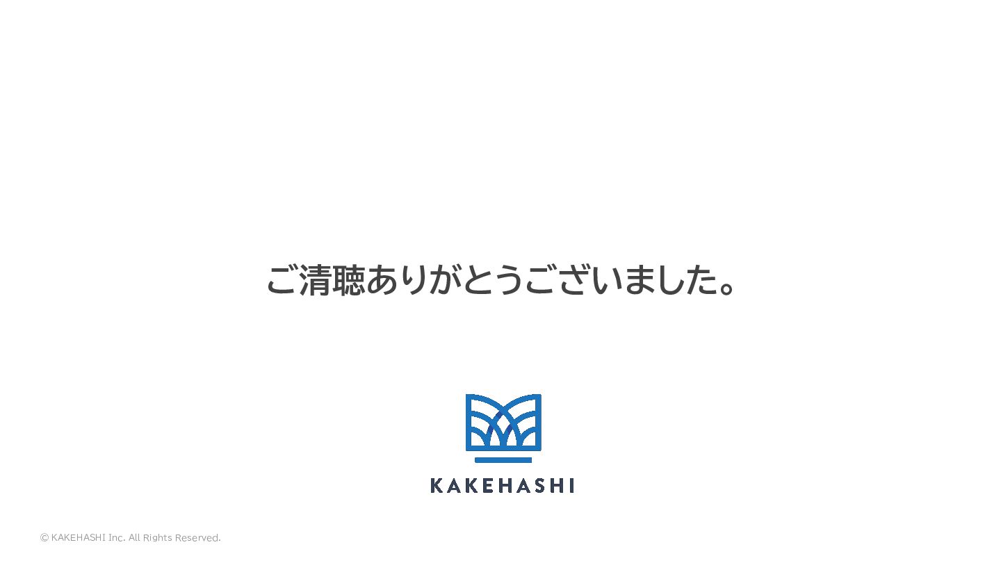 © KAKEHASHI Inc. All Rights Reserved. ご清聴ありがとうございました。
