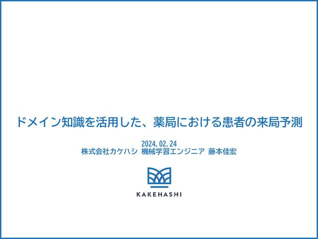 ドメイン知識を活用した、薬局における患者の来局予測 2024.02.24 株式会社カケハシ 機械学習エンジニア 藤本佳宏