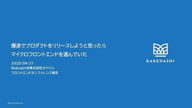 ©KAKEHASHI inc. 爆速でプロダクトをリリースしようと思ったら マイクロフロントエンドを選んでいた 2025/09/21 Nokogiri@株式会社カケハシ フロントエンドカンファレンス東京