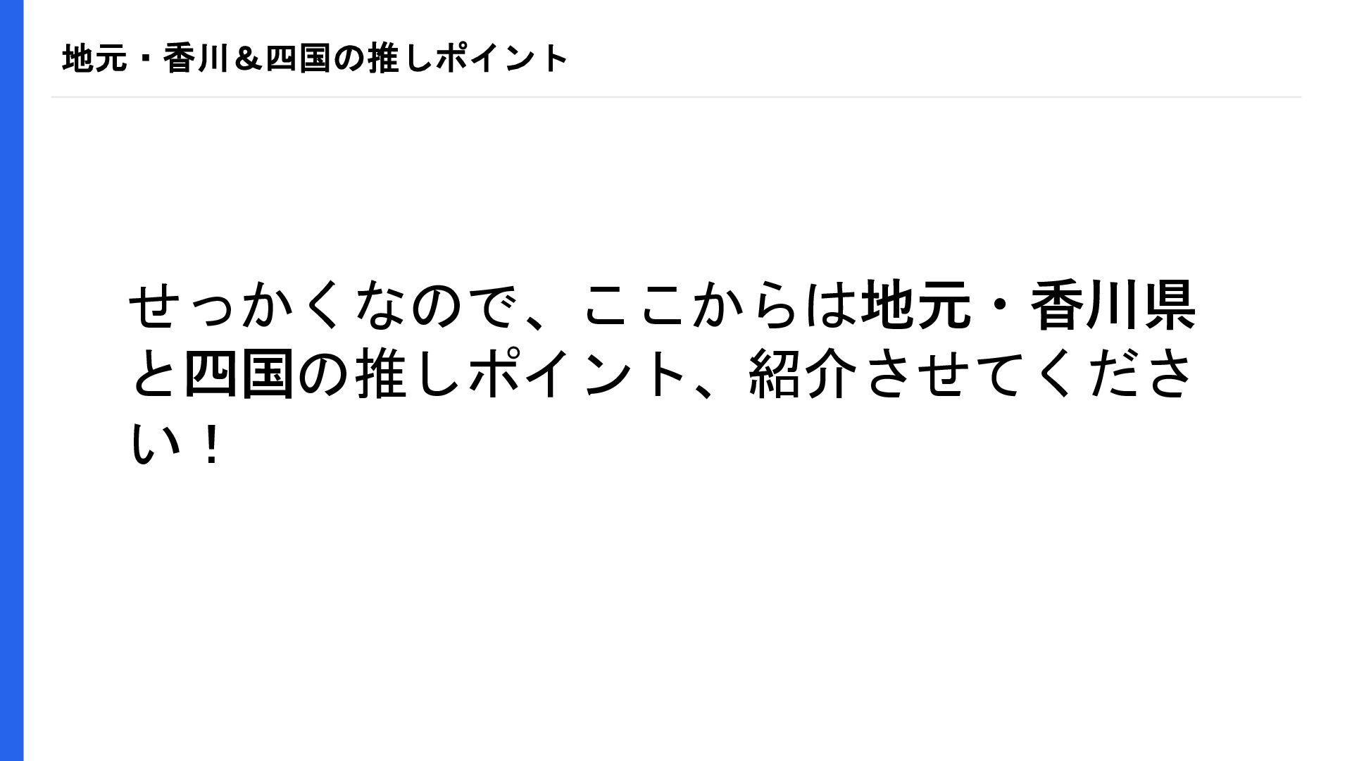 地元・香川&四国の推しポイント せっかくなので、ここからは地元・香川県 と四国の推しポイント、紹介させてくださ い!
