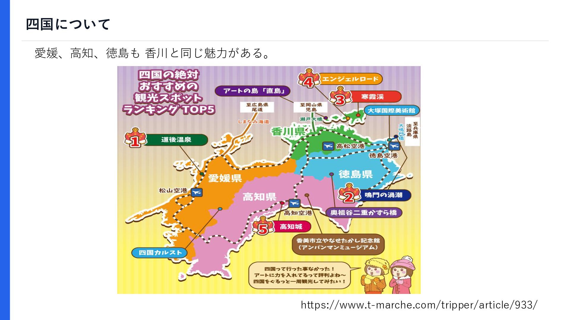 四国について https://www.t-marche.com/tripper/article/933/ 愛媛、高知、徳島も 香川と同じ魅力がある。