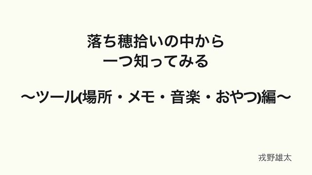 ۩ମྫ • ॴ • ΦϑΟε(ԁ)/ϦϞʔτ(إͷஔ/όʔνϟϧ)/ެԂ/ϫʔέʔγϣϯ(ཱྀߦઌΛੵۃతʹࣗຫ͍͚ͯ͠ʂ) • ϝϞ • Twitter/ࢴ/ϗϫΠτϘʔυ/ᝦ(ܗ)/ࣸਅ/Miro/Wiki/Ի/จࣈ͓͜͠/ςΩετͱԻͷରൺ/࣏҆ͷѱ͍ελϯϓ •
