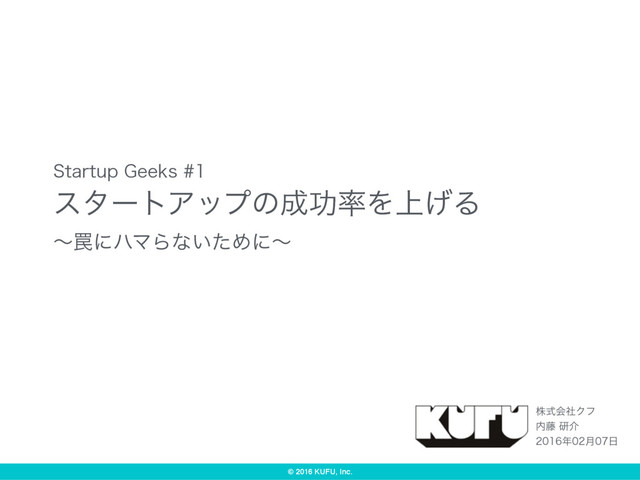© 2016 KUFU, Inc. 4UBSUVQ(FFLT ελʔτΞοϓͷޭΛ্͛Δ ʙ᠘ʹϋϚΒͳ͍ͨΊʹʙ גࣜձࣾΫϑ ౻ݚհ ݄