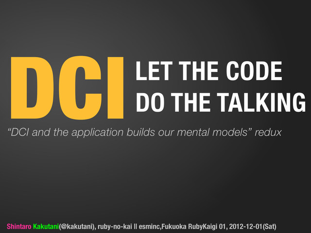 builds our mental models” redux Shintaro Kakutani(@kakutani), ruby-no-kai || esminc,Fukuoka RubyKaigi 01, 2012-12-01(Sat)