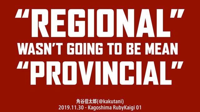* Regional RubyKaigi のご提案 (@kakutani): https://www.slideshare.net/kakutani/proposal-for-regional-rubykaigi